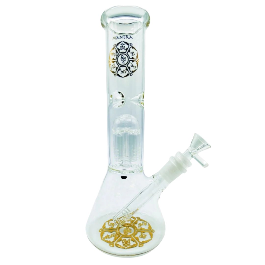 Bonito Bong Baker Base marca Mantra Con percolador Downstem y Central tipo jellyfish de 6 columnas. Ice pinch para poner hielos y obtener una bocanada superfresca y limpia.