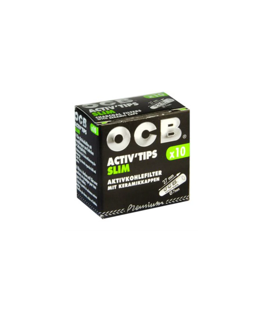 Los Activ' Tips Slim Premium de OCB son filtros delgados con carbón activado y tapas cerámicas, diseñados para mejorar la experiencia de fumar: