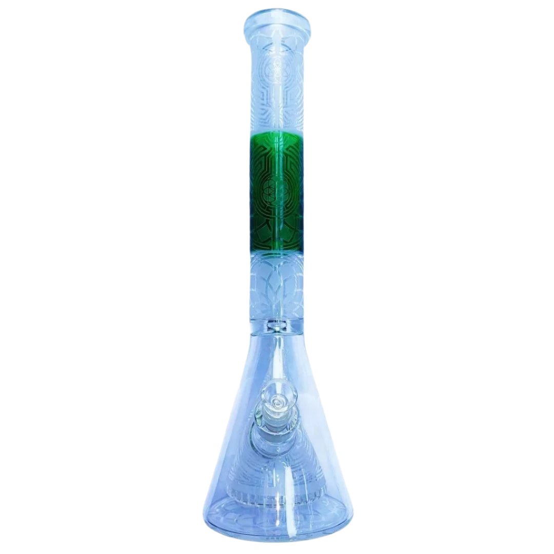 Arte de geometría sagrada en todo el bong incluyendo base y percolador interno. Altura: 43cm