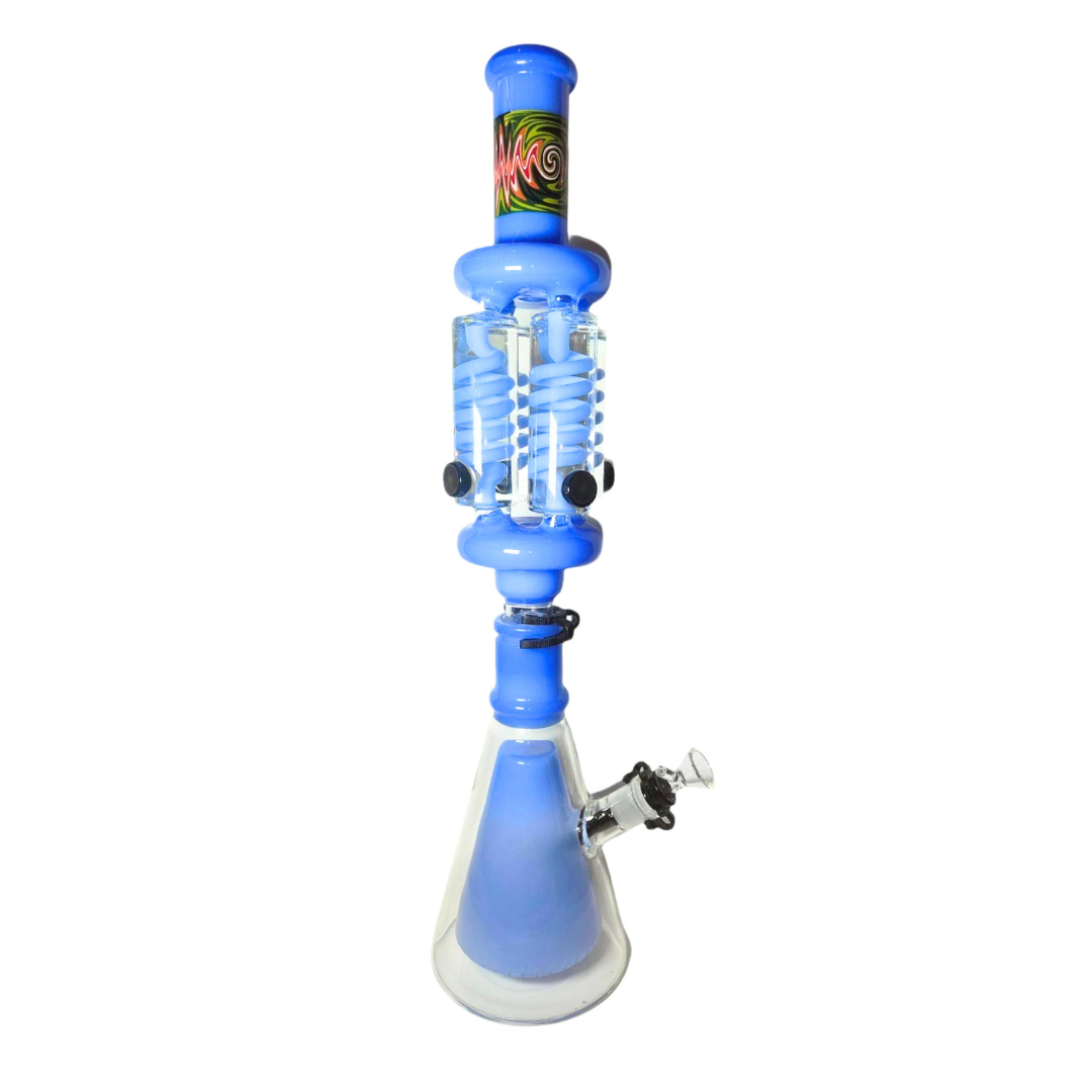 Bong desarmable, con arte Wig Wag hecho a mano, múltiples percoladores: base completa de percolación, downstem y 4 coils con glicerina para obtener una bocanada superfresca.